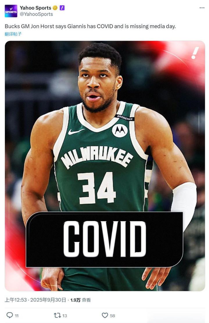 今天雄鹿媒体日,老板艾登斯和总经理霍斯特参加新闻发布会,期间霍斯特面对媒体时宣布,字母哥感染了新冠将暂时离队,只能通过视频的方式参加新赛季媒体日的采访环节。